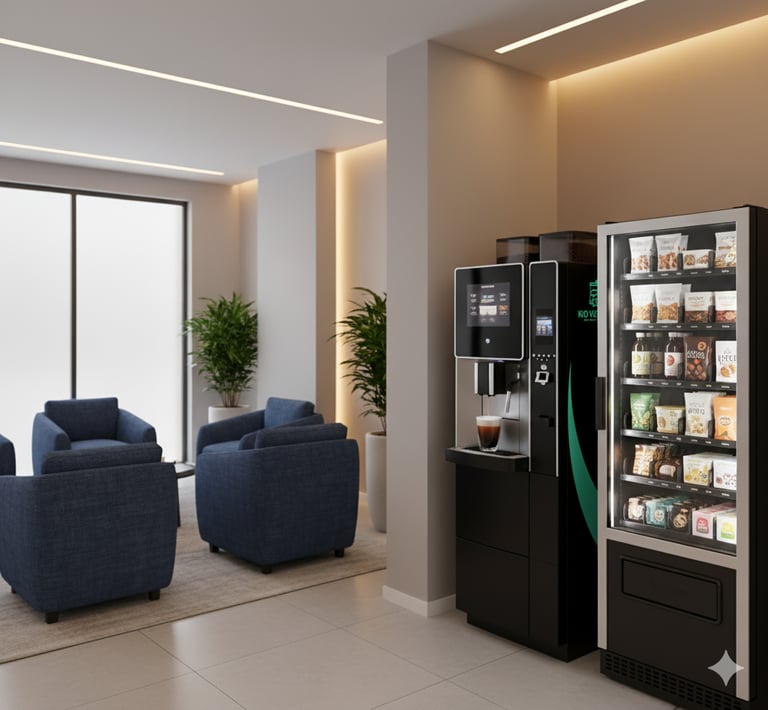 Mejore la experiencia de sus clientes en salas de espera en Clínicas, Gimnasios, Talleres, Canchas, Centros de Entrenamiento; cualquier lugar donde haya que esperar un café y un snack lo hace más amigable.