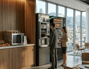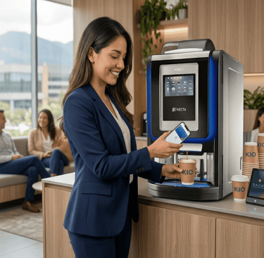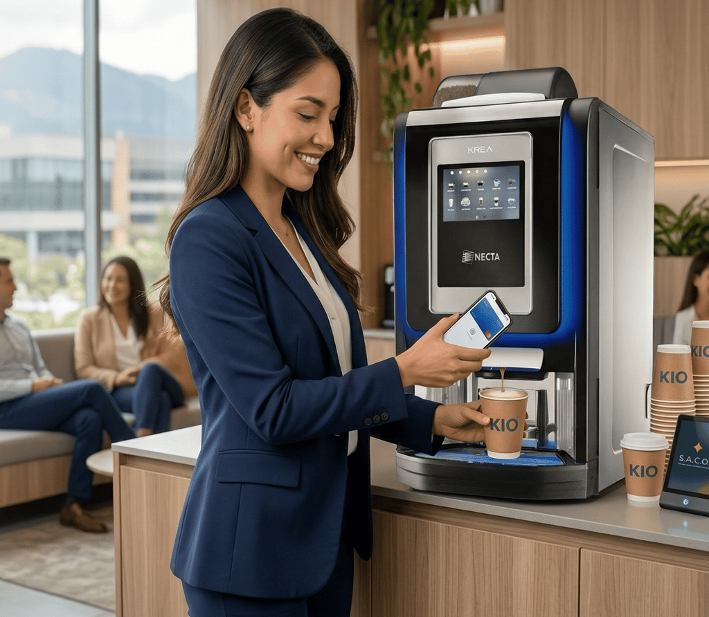 Con el Servicio de Automatización de Café para Oficinas (S.A.C.O.), KIO Vending instala y opera ecosistemas de alimentación inteligentes directamente en tus instalaciones.
